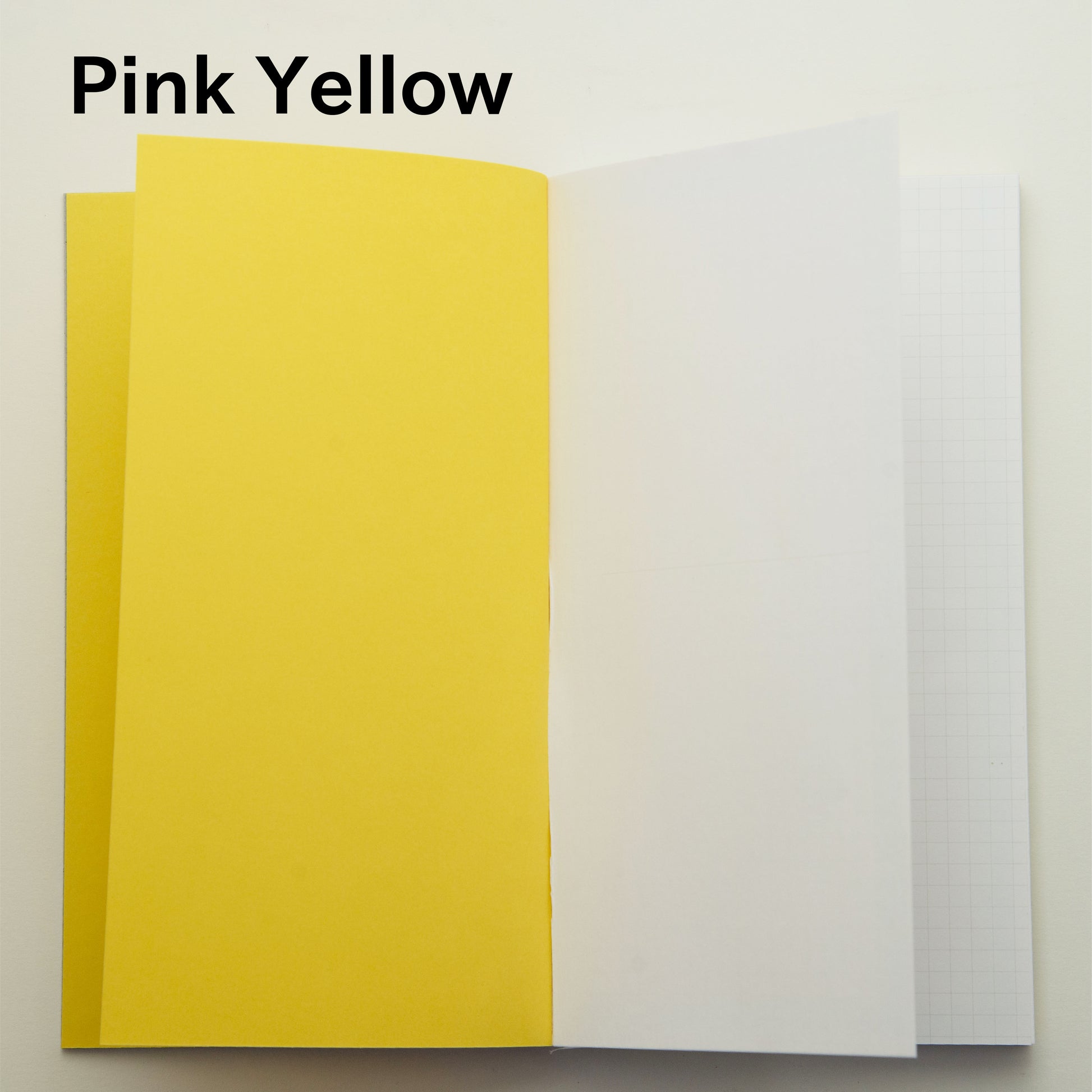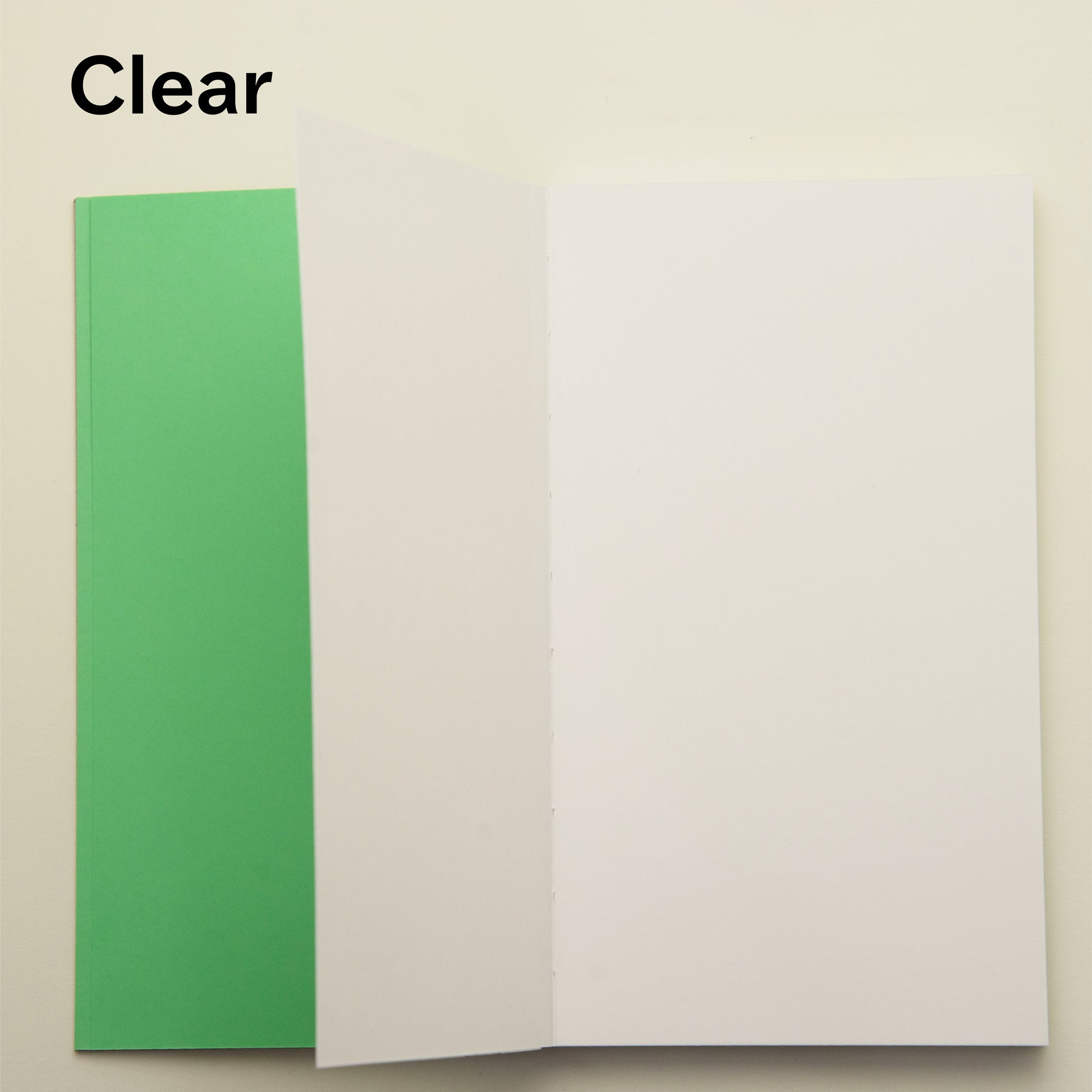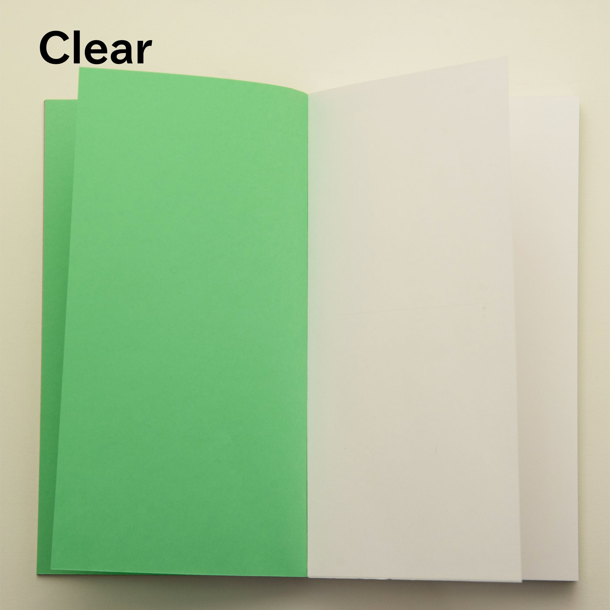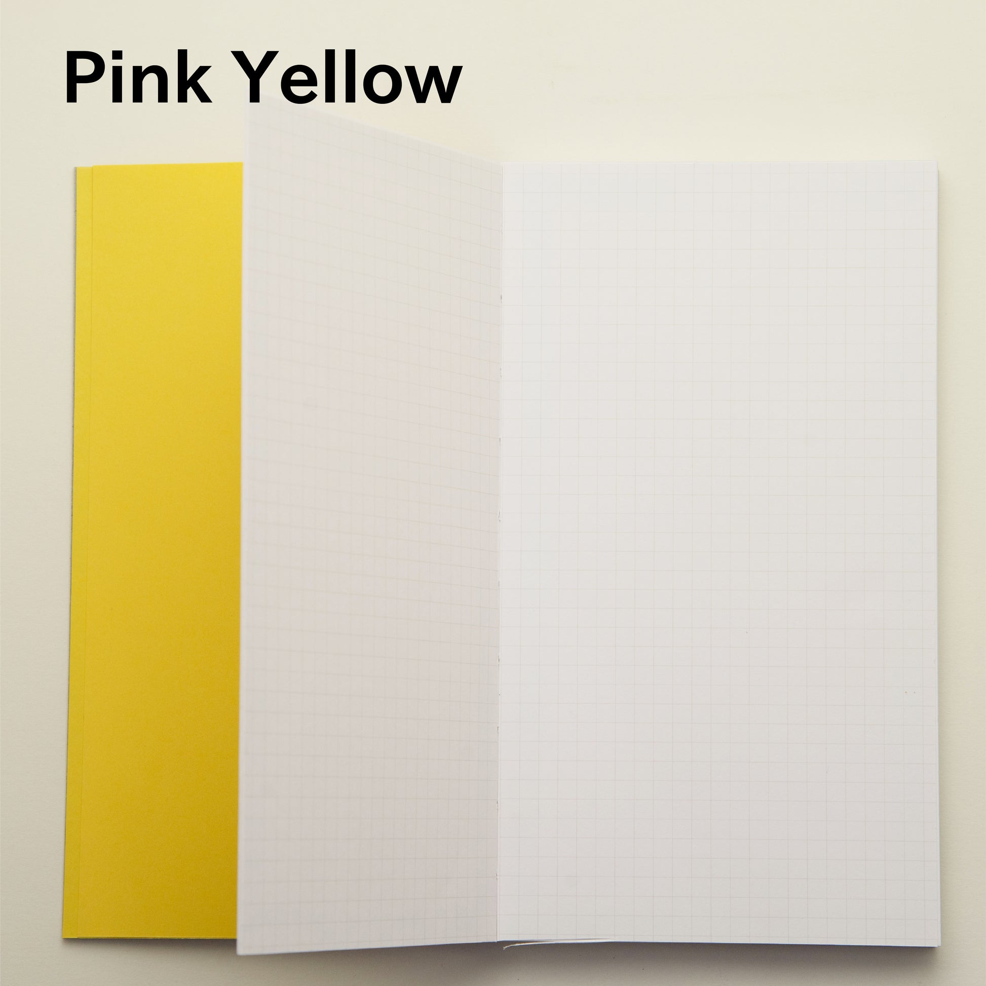 それぞれの表紙をよく見るとBlueGreen には罫線、PinkYellowには方眼、Clearには薄引きでパールインキでの印刷が施されています。